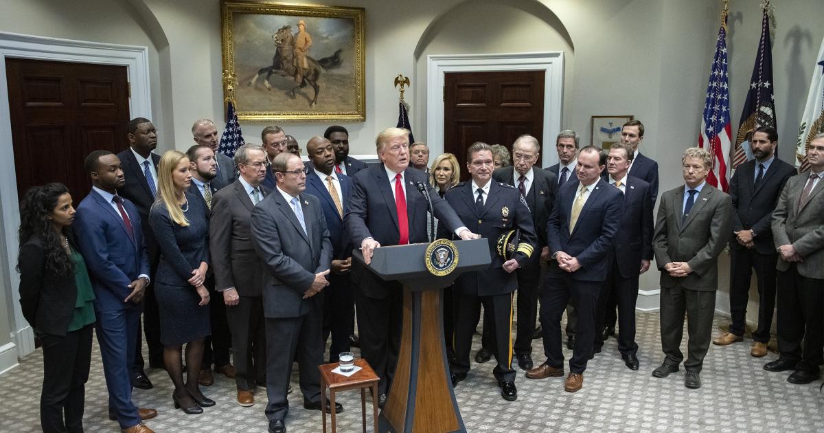 “Throughout this process my administration has worked closely with law enforcement,” Trump said, “to ensure that the legislation remains tough on crime” and supports police. Several major law enforcement groups, including the Fraternal Order of Police, the National Organization of Black Law Enforcement Executives, and the International Association of Chiefs of Police, support this initiative.